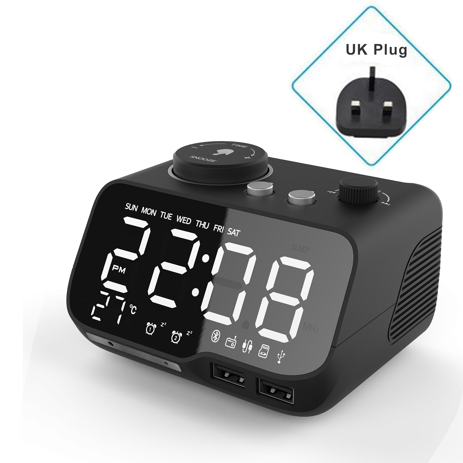 - Caracteristicas : Digital, 4 formas de ajustar su luz, 2 salidas USB, temperatura, hora, HIFI calidad de sonido