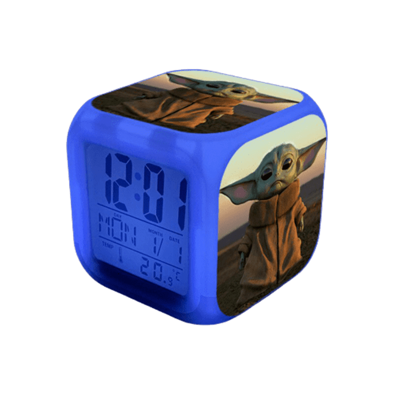 Despertador luminoso con diseños de Yoda para adultos y niños fans de este personaje. Su tamaño y cuerpo luminoso es ideal para adornar tu dormitorio.